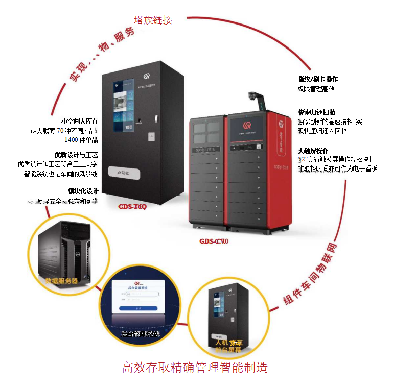智能物料管理柜是集倉儲、采配、管理為一體的智能管理柜??涉溄悠髽I(yè)原有管理系統(tǒng),解決企業(yè)生產(chǎn)日常耗材、勞保用品、刀具使用的智能化管理。實(shí)現(xiàn)智能數(shù)據(jù)分析采購、補(bǔ)貨、領(lǐng)料、統(tǒng)計(jì)、二次品再利用、呆滯品處理、降低生產(chǎn)成本等一系列問題。